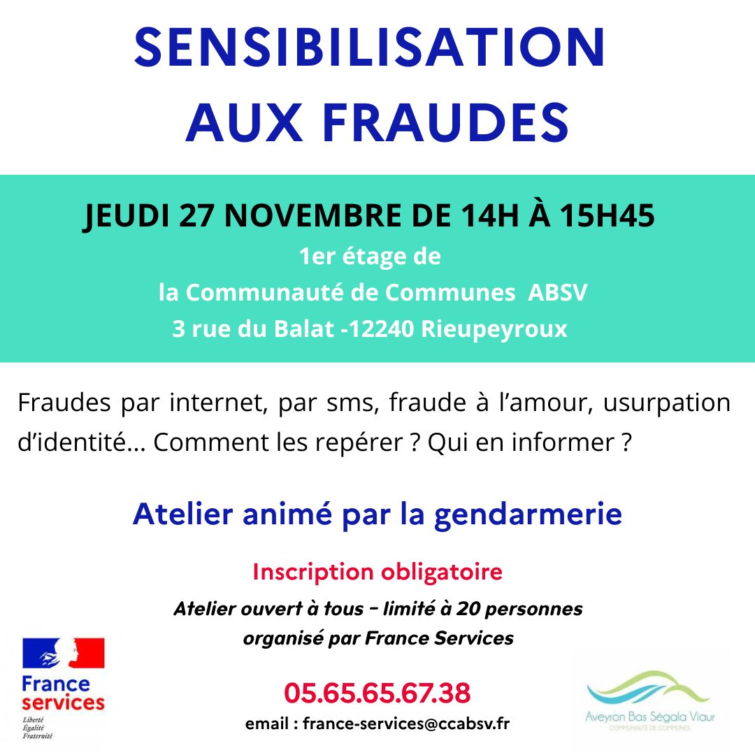 le 27 Novembre de 14h00 à 15h45 aura lieu dans nos locaux, un atelier sensibilisation aux fraudes animé par la gendarmerie.